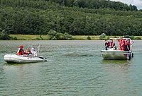 Katastrophenschutzzug und DRK-Wasserwacht üben Ölfilmbekämpfung und Wasserrettung auf dem Ahler Stausee